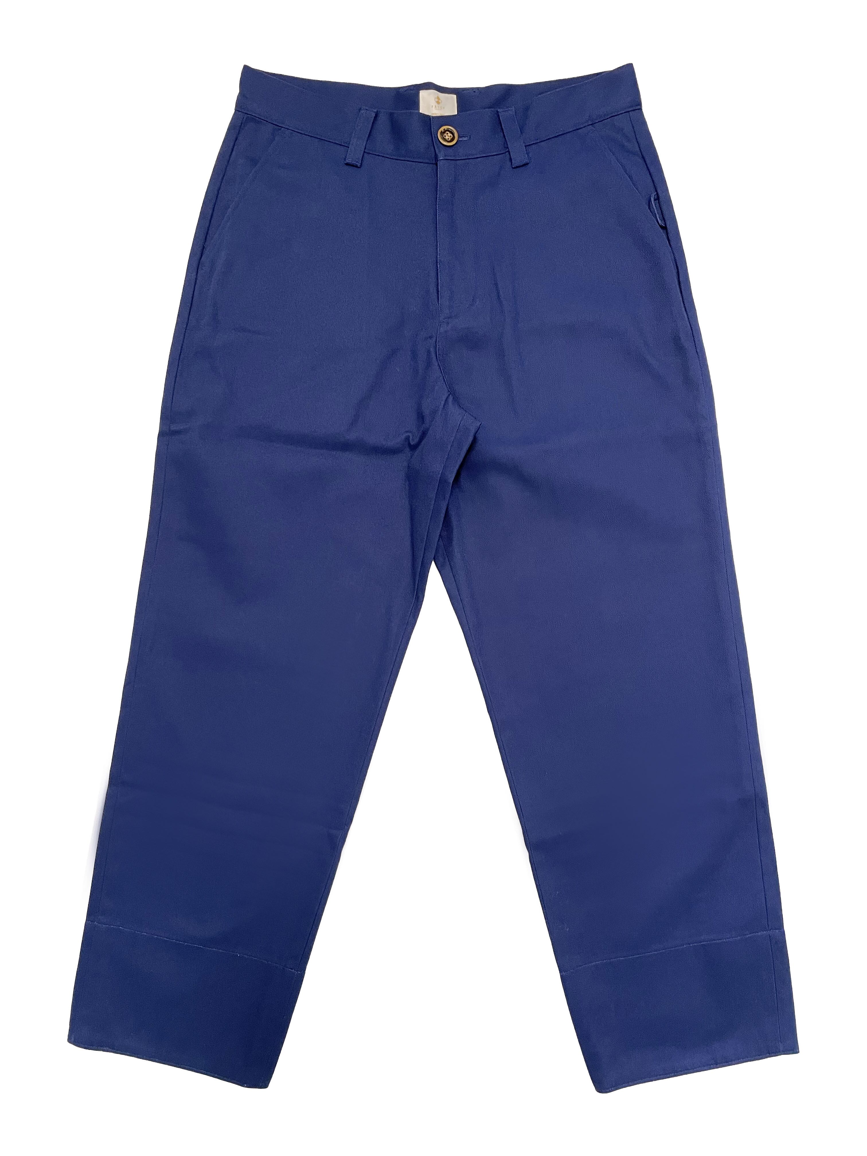 ・Sleek straight-leg khaki pants, which look even more polished when rolled up the hem