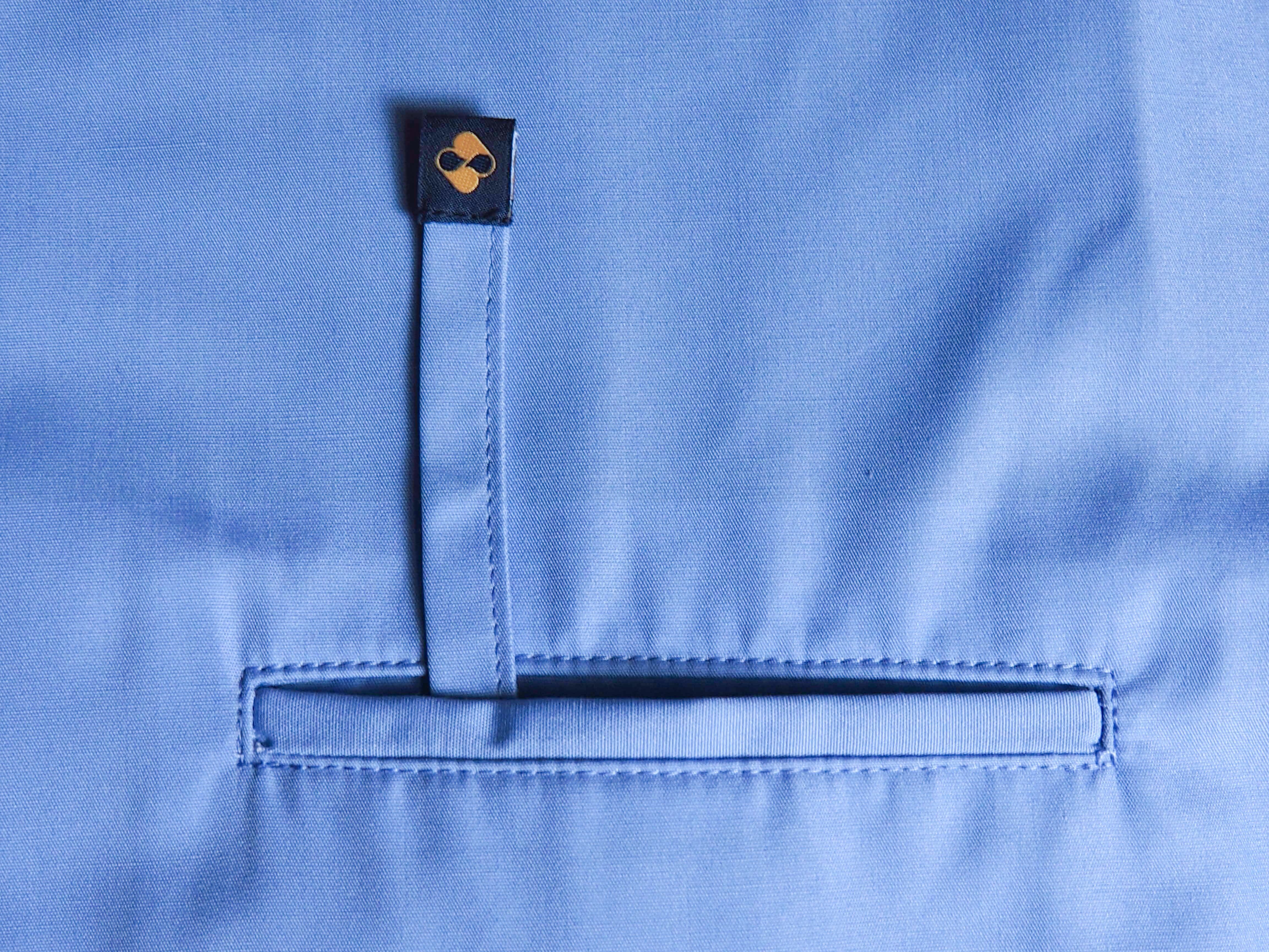 ・The design of the shirt pocket is inspired by the drawning commonly used in business card holders, which is a playful challenge